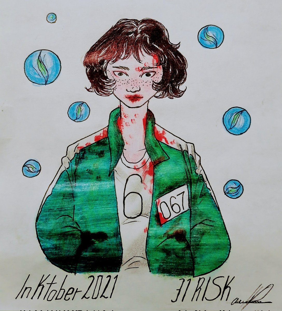 No he visto la serie pero me gustó la referencia. #inktober #inktober2021 #inktober2021day31 #inktober2021day31risk #ElJuegoDelCalamar