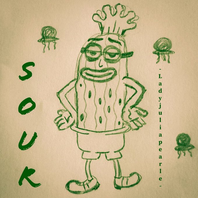 11. Sour Kevin the Pickle Even though you could buy sweet and sour pickles, this one spent to much time swimming in saltwater brine. #inktober #inktober2021 #draw #sketch #drawing #art #sour #inktober2021sour #spongebob #nickjr #nickelodeon #kevin #pickle #saltwater #brine