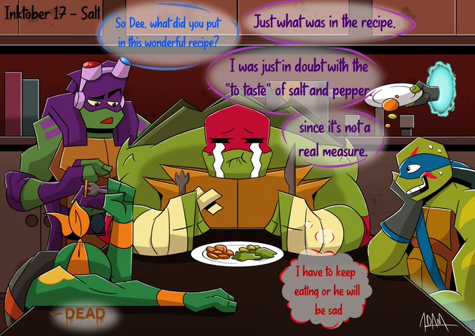 Donnie once ventured into the kitchen, just because Mikey said cooking wasn't just about "following the recipe". #RiseoftheTMNT #SaveRiseoftheTMNT #RiseSeason3 #rottmnt #RiseoftheTMNTmovie #saverottmnt #UnpauseRiseoftheTMNT #inktober2022 #inktober #inktober2022day17