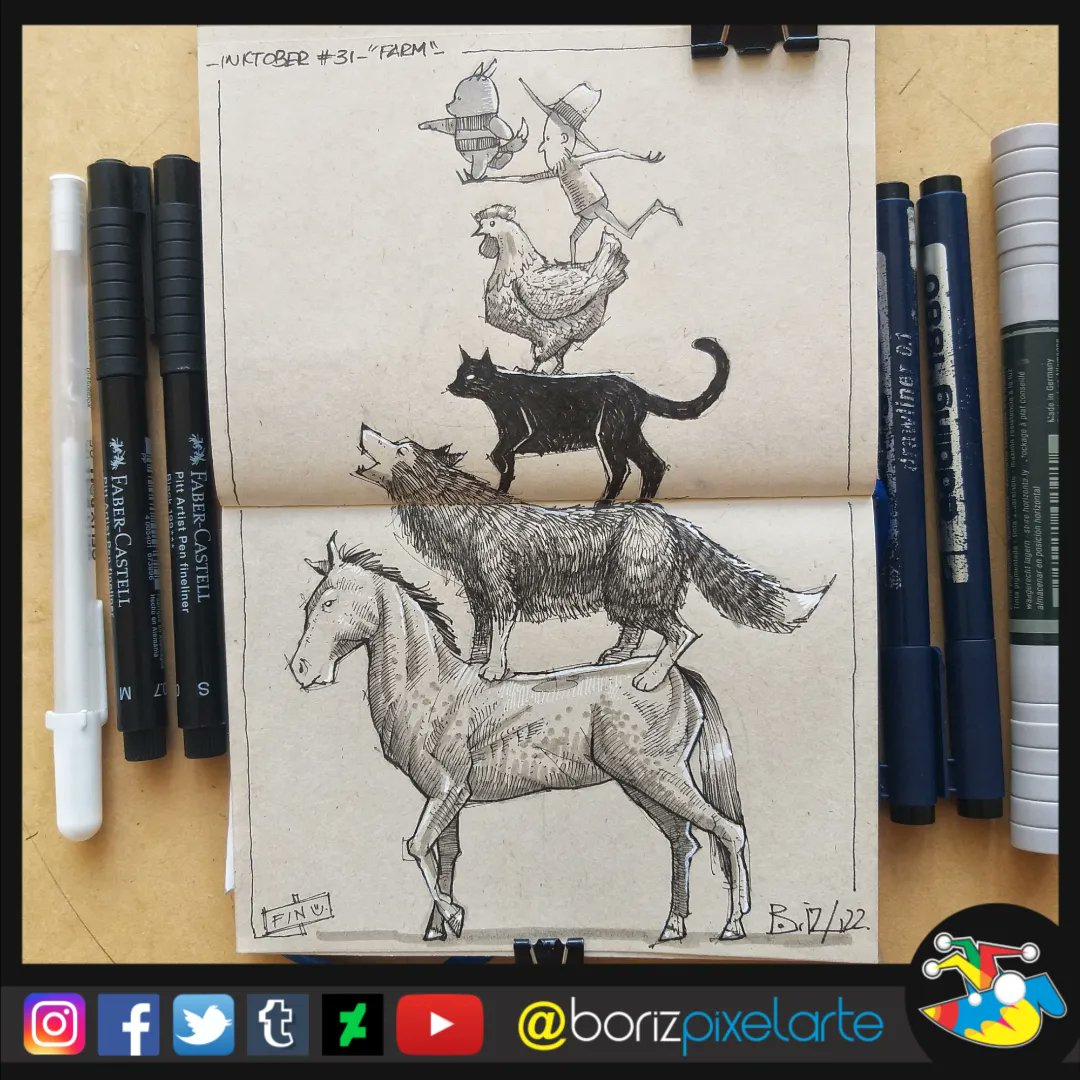 Inktober day 31! Word prompt: Farm. Another Inktober sketchbook completed! Thank you so much for the support!! #inktober #inktober2022 #inktober2022day31 #drawing #illustration