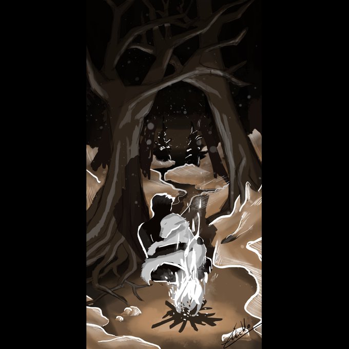 I am particularly happy with how this turned out. Doggos can be such cute creatures, even big ones. #inktober2022 #digitalart #inktober2022_day13 #eddiewho #skullsandbrains #kind #kindness #forest #embrace #camp #inktober2022kind #randigital