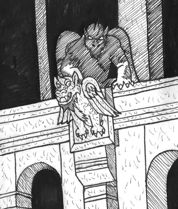 "Night gathers, and now my watch begins..." #Inktober #inktober2022 #inktoberchallenge #inktober2022day1 #inktober2022gargoyle #inktober2022day1gargoyle