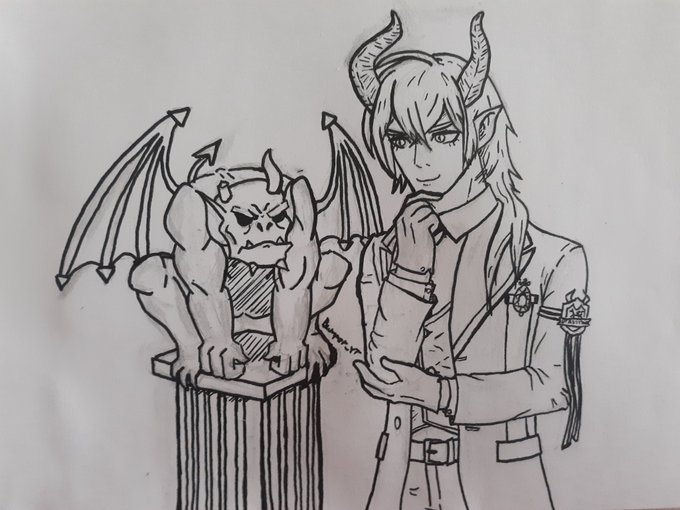Inktober day 1: Gargoyle Malleus Draconia, the biggest fan of gargoyles #inktober2022 #inktober #InkToberDay1 #inktober2022gargoyle #inktobergargoyle #inktober2022day1 #inktoberday1gargoyle #inktober2022day1gargoyle #twistedwonderland #malleus #malleusdraconia