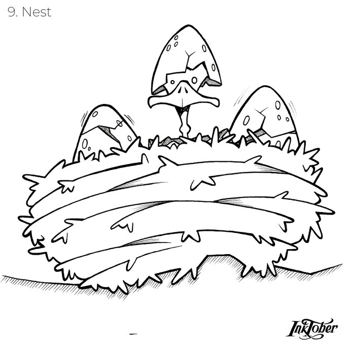 InkTober:Day9 NEST / 巣 「ピヨピヨ」 #inktober #inktober2022 #inktober2022day9 #Inktober_PerfectChallenge #インクトーバー #インクトーバー2022