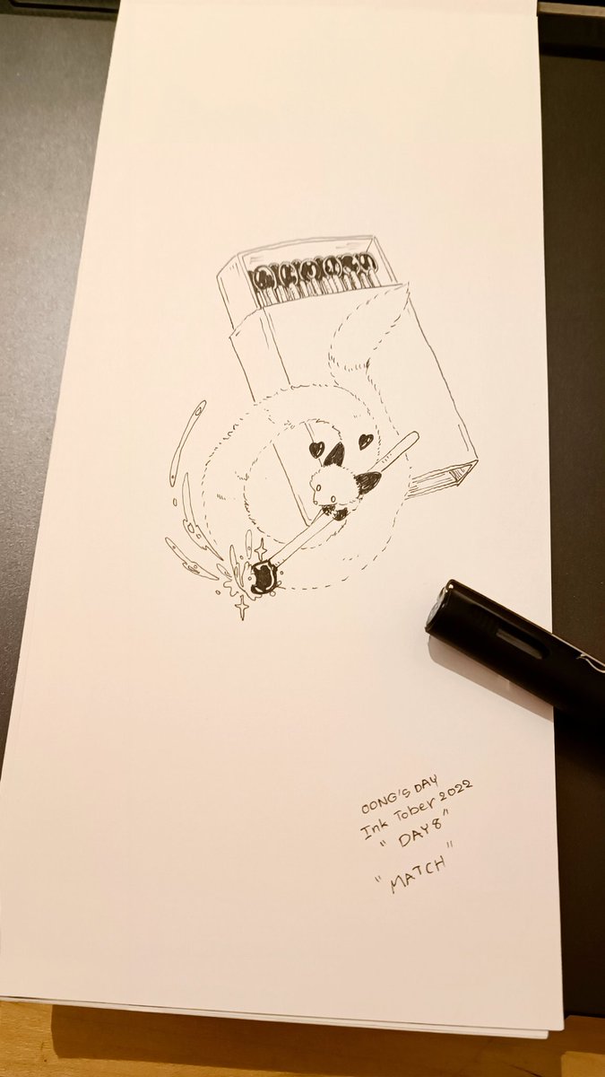 •Inktober 2022•Match• This match is trying to match with you 🤭 catching up with day 8~ •Kuretake Bimoji Fude Pen, ZIG Art & Graphic Twin, Zebra Technical Drawing 01 @inktober #inktober #inktober2022 #inktober2022day8 #inktober2022match #art #artwork #traditionalart #ink