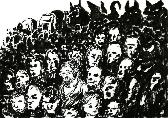 This has been a difficult prompt and hence a difficult piece - so I have been putting it off: I work in the entertainment industry, crowds are my home and income! But there are days, the lock-down demons simply get too close! #Inktober #inktober2022 #inktober52 #inktober52crowd