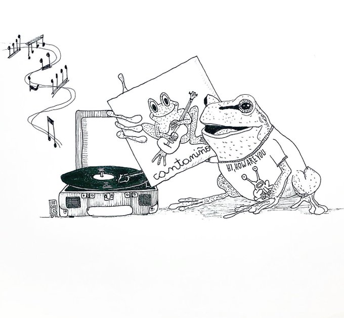 INKTOBER 52 2022, Prompt Number 4: FROG. (Estilógrafo sobre papel, 17 x 12 cm) Acá tenemos a un sapo en un mundo musical lleno de sapos. #inktober52frog #inktober #inktober52 #inktober2022 Para más contenido visitá mi IG 👉🏽 instagram.com/repetitivo/