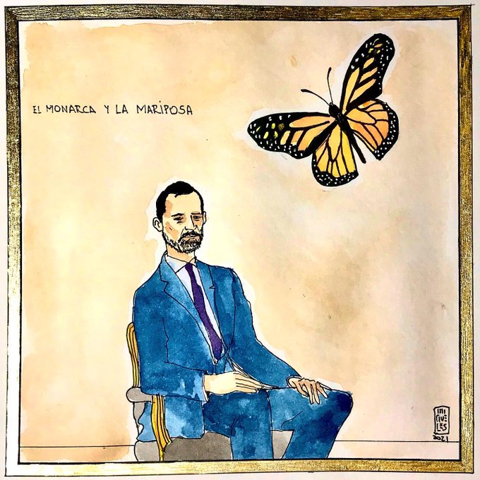 39. Monarch. El monarca y la mariposa. (Estilógrafo, acuarela y bolígrafo en gel sobre papel de 240 gramos, 14 x 14 cm) 🇪🇸👑🦋#inktober52monarch #inktober #inktober52 #inktober2021 Para más contenido visitá mi IG 👉🏽 instagram.com/repetitivo/