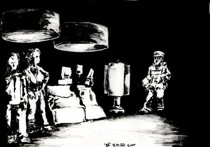 Wanted to draw somekind of workshop or makerspace - however, there is so much life going on off the drawing table. So this is a quick and dirty shop interior. #Inktober #inktober2021 #inktober52 #inktober52Shop