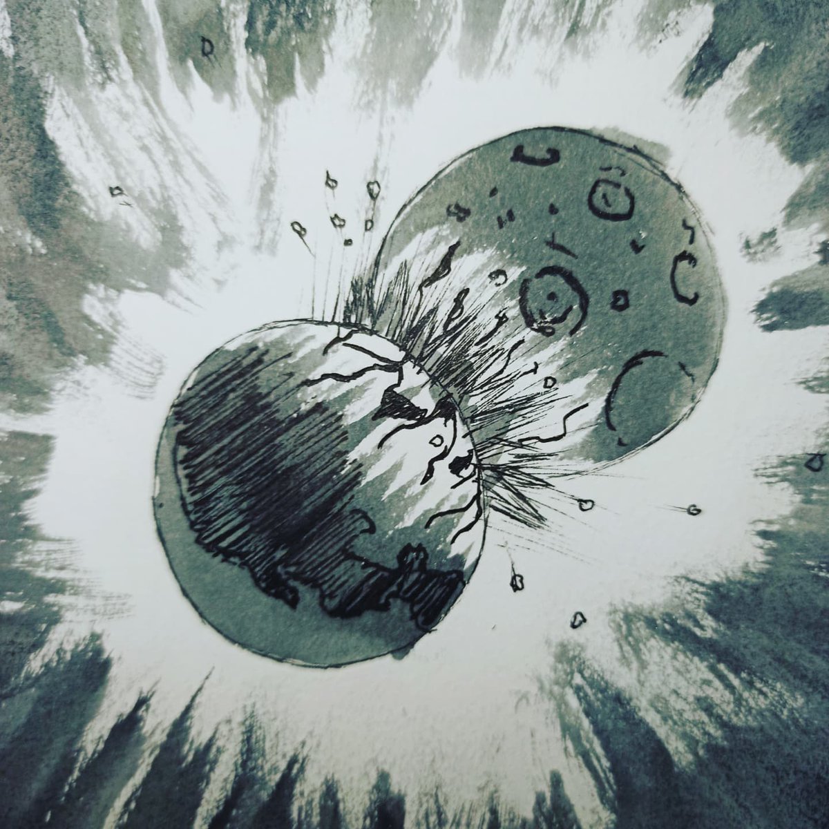 Day 17: Collide Took me a bit to find my way on this one, but my philosophy is to embrace mistakes, so here it is. #inktober2021 #inktoberday17collide #inktobercollide