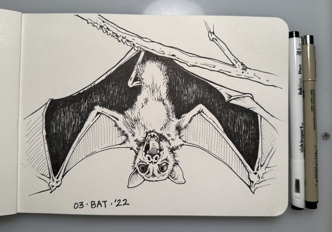 Found this adorable critter on google images and had to draw him <3 #Inktober #inktober2022 #inktober2022day3 #inktoberday3 #inktober22 #inktober2022day3bat #Inktoberbat #inktoberday3bat #Artists #draw #drawing #bat