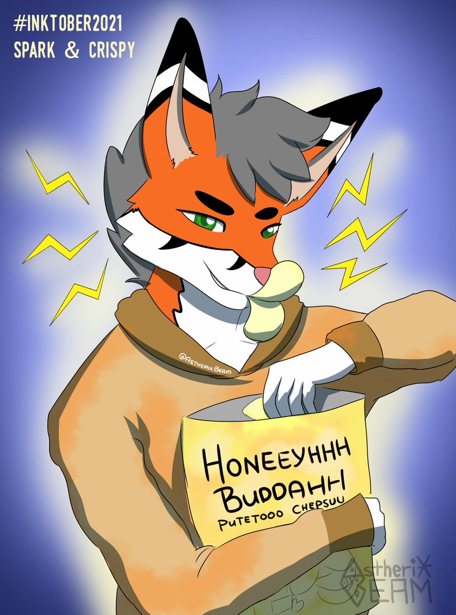 Prompt 27, 28. Spark, Crispy. I just hecking love these chips. It gives me literal battery and energy to continue the day. #inktober #inktober2021 #inktoberfurry #digitalart #furry #furryart #furryfandom #furryartwork #Furryartist #digitalfurry #Spark #crispy #honeybutterchips