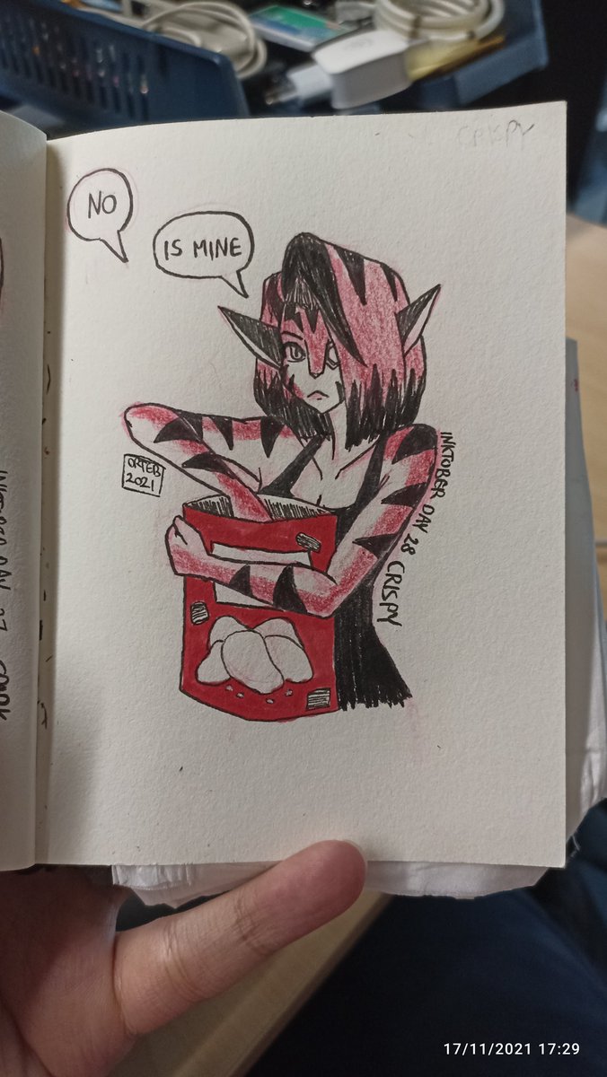 #inktober day 28: CRISPY A bag of crisps. #inktober2021 #inktoberindonesia #inktoberindonesia2021 #characterdesign #sketch #visdev #visualdevelopment