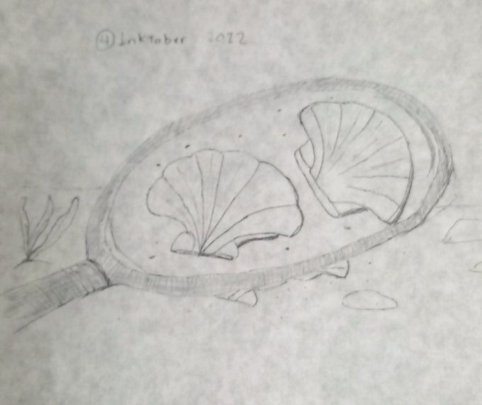 #Inktober #Inktober2022 #inktoberlite Dia 4: hoy scallop o Vieira y...😅😔 pos no hubo imaginación, hice algunos bocetos pero hasta allí quedé, a veces no hay inspiración 🤷, prometo ser más creativo...tal vez :3 (siganme en insta @bewear96_epr