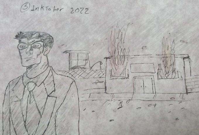 #inktober2022day5 #inktober2022 #inktoberlite Dia 5 Flame o llamas..(Contexto: este hombre es Jake, The machina Wolf y hará lo que sea por dinero, esto de aquí no es nada) [Más contexto: Battle Construction Vehicles] siganme en insta @bewear96_epr y reddit r/superjueves