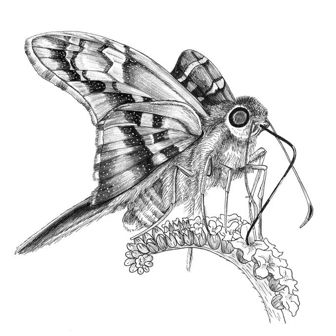 ¡Hola, soy Elizabeth (instagram.com/eliza_lohez)! Me tomo hoy las redes del panda para publicar la saltarina de cola larga azul (Urbanus proteus). Es una mariposa migratoria presente en la región tropical y subtropical de Suramérica y Norteamérica. #Inktoberpanda día 8. #inktober