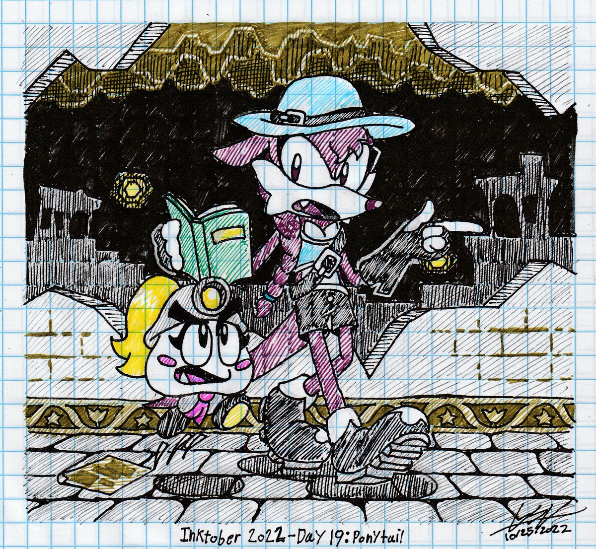 Inktober 2022 - Day 19: Ponytail. Nic found herself terribly lost on her latest expedition, but along the way she met a delightful new Research Partner. #Inktober #Inktober2022 #InktoberDay19 #InktoberPonytail #Ponytail #NicTheJerboa #Goombella #PaperMario #Sonic #Crossover