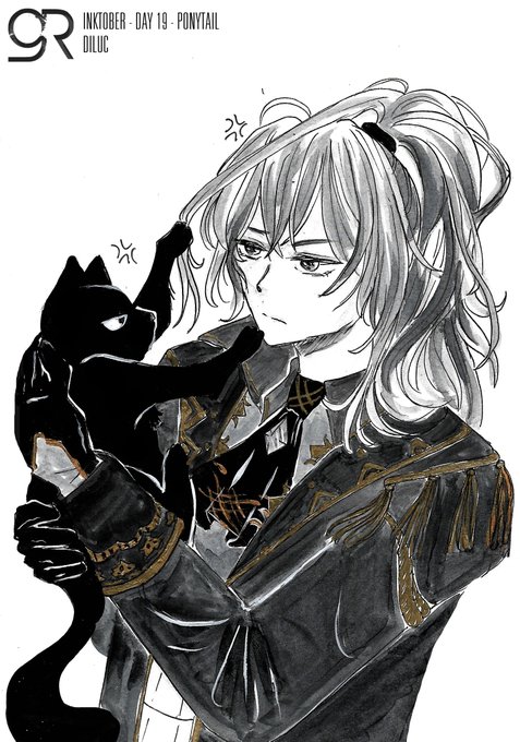 Inktober 2022 Día 19 - Ponytail (Cola de Caballo) Diluc con su peinado alto (que no me agrada mucho, perdón). Si, le puse un gato... :3 #Inktober #Traditional #TraditionalArt #ink #Inktober2022 #Ponytail #InktoberPonytail #InktoberDay19 #Fanart #Diluc #GenshinImpact #Sketch