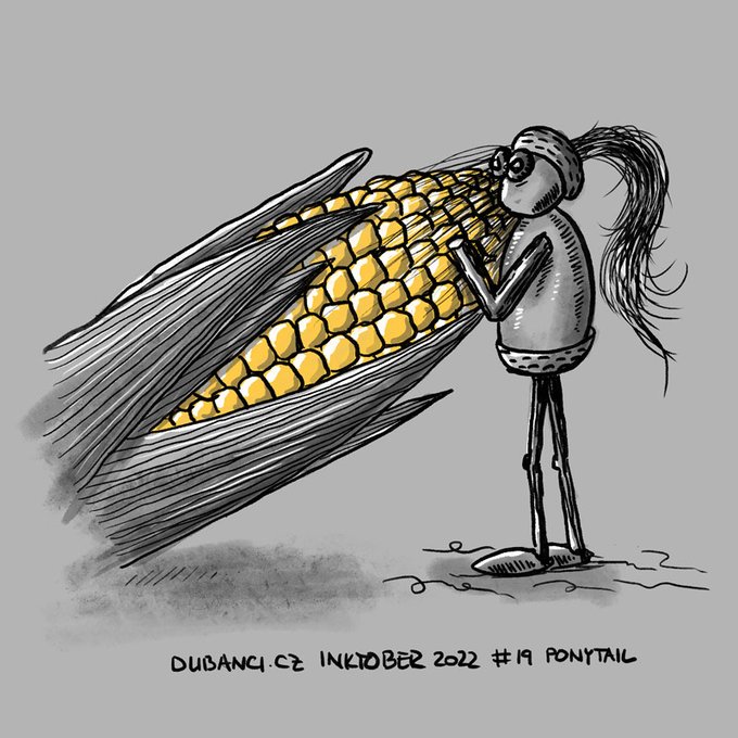 19. den inktoberu, téma "ponytail", v překladu asi culík, prostě účes, co připomíná koňskou oháňku :) Toto téma jsem vymýšlel asi nejdéle, nakonec mě napadla kukuřice. #inktober #oaktober #inktober2022 #inktoberponytail #inktoberponytail2022 #ponytail #procreate #art