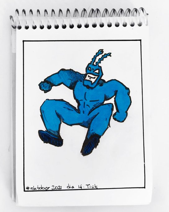 #inktober2021 día 14: Tick Ahhh pensaron que iba a poner un reloj!! 😃 Nop!! Voy por uno de los dibujos más bizarros y copados del #foxkids de antaño: #TheTick @inktober #inktober #inktoberday14 #inktobertick #tick #cartoons #inkartwork #inkart #colors @TheTickTV #garrapata