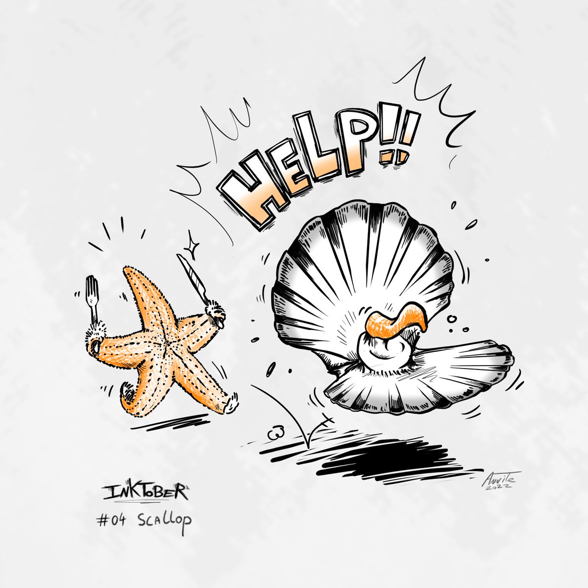 #inktober 04 - Scallop It seems that starfishs are proliferating in some places and threatening scallop farms. Bruh... if only it was just that. :( #inktobet2022 #inktober52