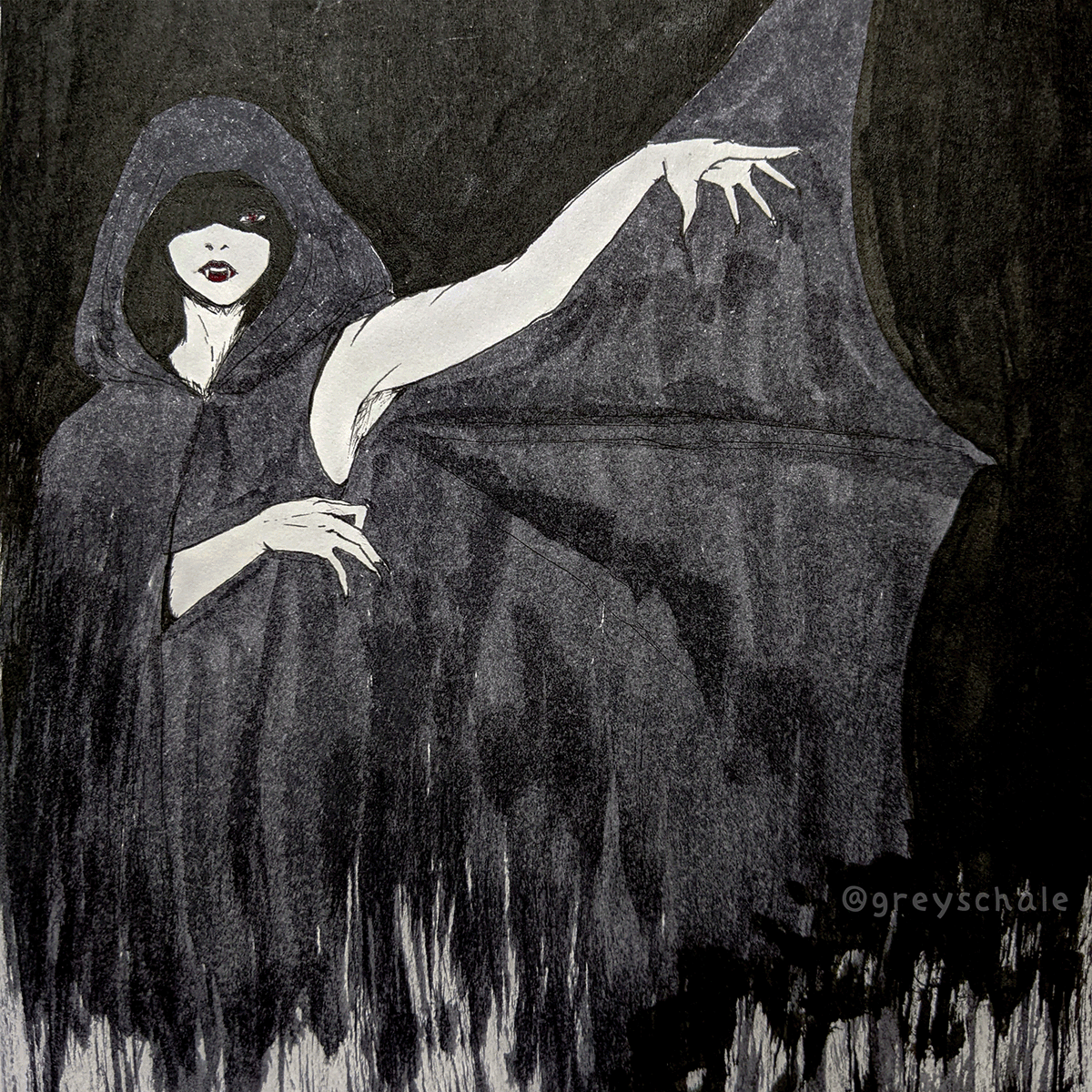 #inktober 05: Cryptid 🧛♀️🦇 Shadows Apparently vampires count as cryptids? ¯\_(ツ)_/¯ #jesterpromptromp #INKvader