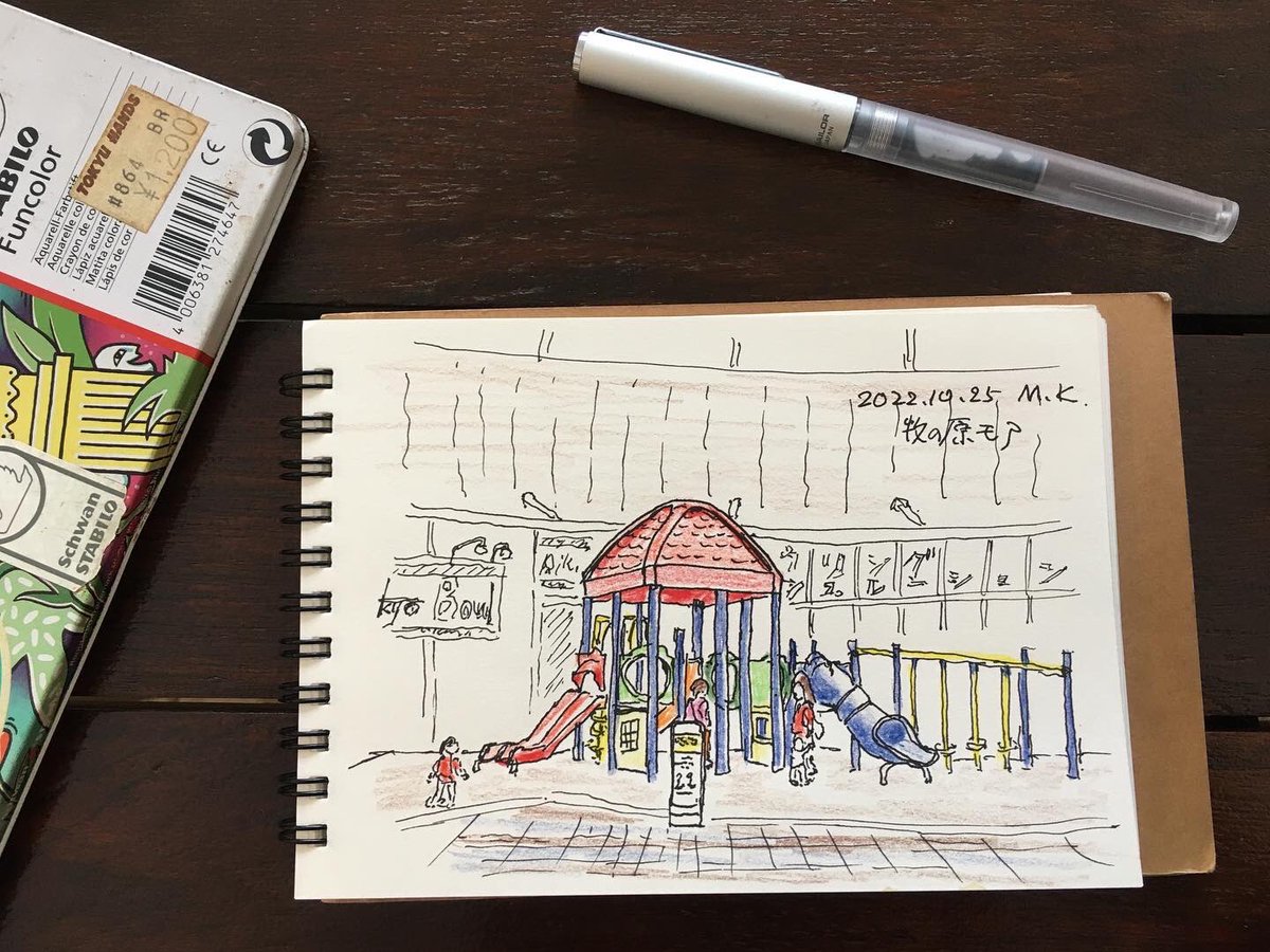 印西市牧の原モアで買い物ついでにスケッチ #urbansketchers #penandink #pen #colorpencil #inzai #makinoharamore #スケッチ #ペン #色鉛筆