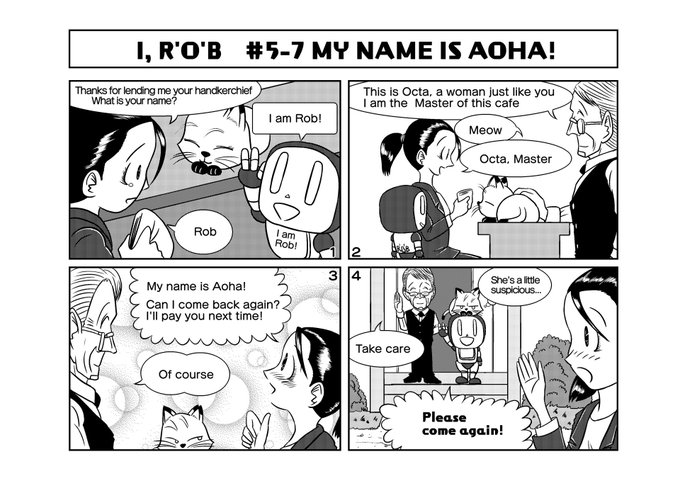 🐈💢 オリジナル漫画「ぼくロブ」第7号から📙 pixiv日本語版(英語版もあります) pixiv.net/artworks/10254… AmazonKindle日本語版 amazon.co.jp/dp/B0BLJHFG55/ #4コマ漫画 #ぼくロブ #一次創作 #comicstrips #irob #originalcomics