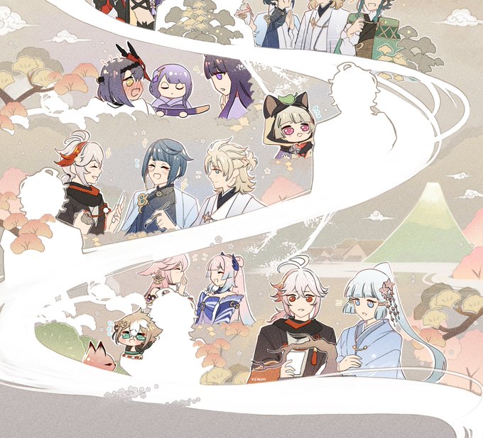 いろどり祭りすごく楽しんでいる😊 キャラいっぱいでてるしアルベドのきれいな描いた絵も見られる😚 まだやれることいるけど、終わりまでたのしみにしている。 #原神イラスト #genshinimpactfanart #irodorifestival #いろどり祭り #KamisatoAyaka #KaedeharaKazuha #Venti #Xingqiu