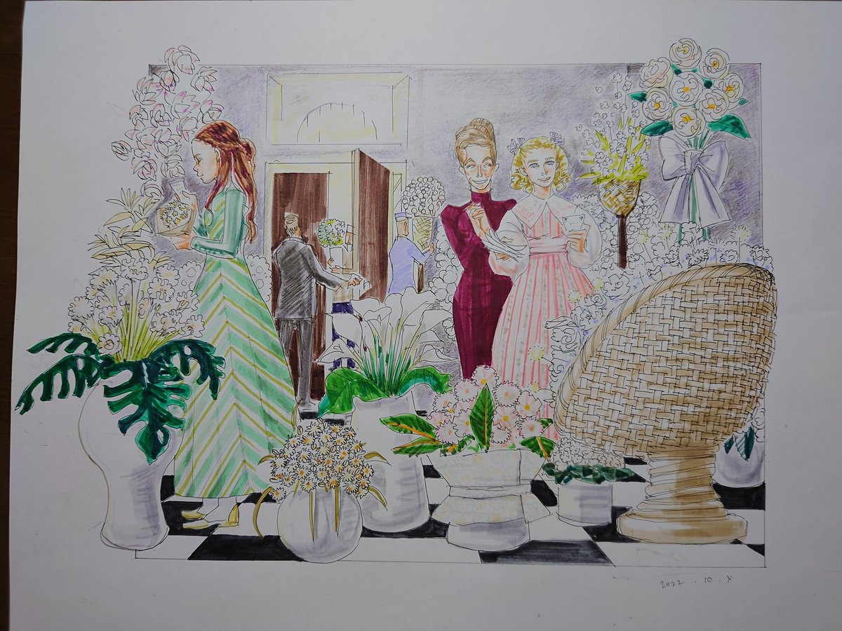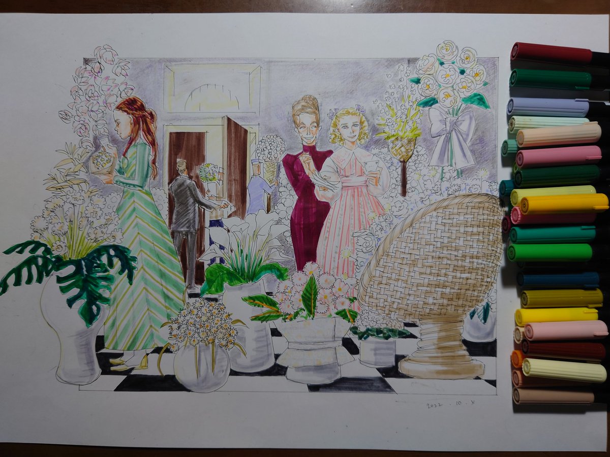 #inktober2022 #インクトーバー2022 Day6-Bouquet #ABTイラコン2022 #トンボ鉛筆 #tombowdualbrushpen #irojiten “A next morning of first dance party for two Debutantes” I love to read #HistoricalRomance