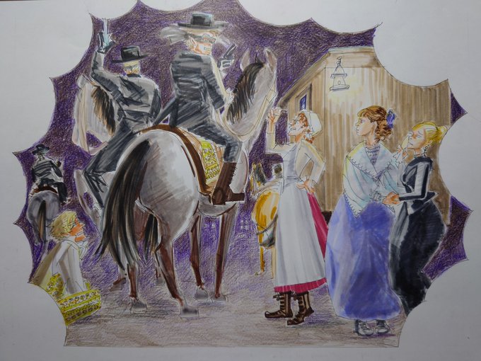 #inktober2022 #インクトーバー2022 Day22-Heist The moonlight catches three Bandits through the clouds. I love to read #HistoricalRomance #tombowdualbrushpen #irojiten
