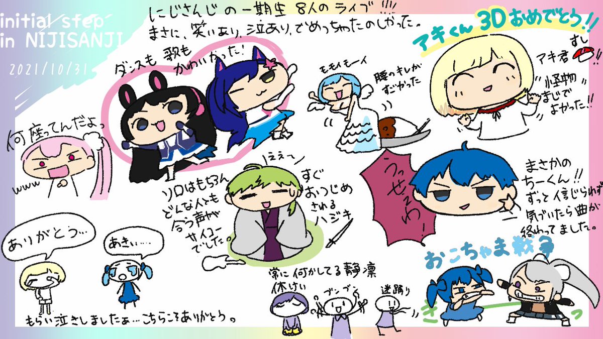 2021.10.31 initial step in nijisanji ゆっくり描いてたちーちゃん多め個人的感想絵×5 現地…めっちゃ…!よかった…!!! 『ほんとに同じ世界線に生きてるんだ』ってちゃんとわかった開幕で号泣しました。 #is_NIJISANJI