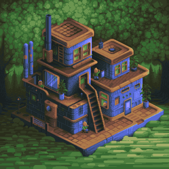 hello #portfolioday, i am jurowa, a lover of pixel art and i like to draw #isometric #1bit stuff