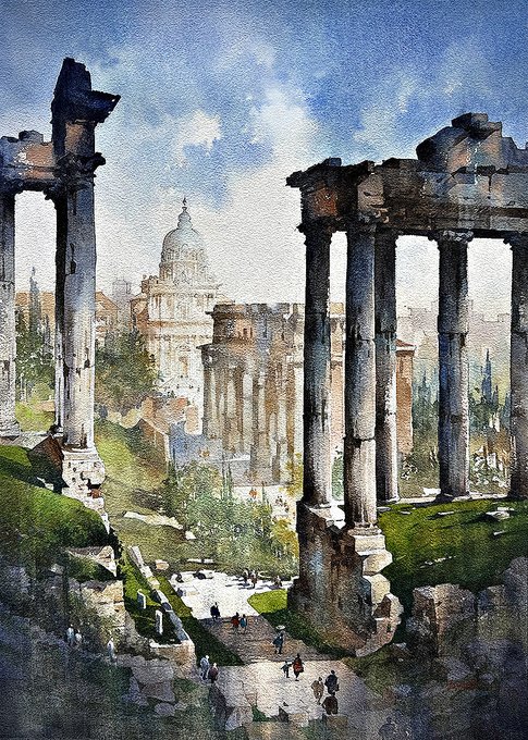 The Forum from the Capitoline Hill #Roma #Italy #art #architecture #antiquity #drawing #watercolorpainting