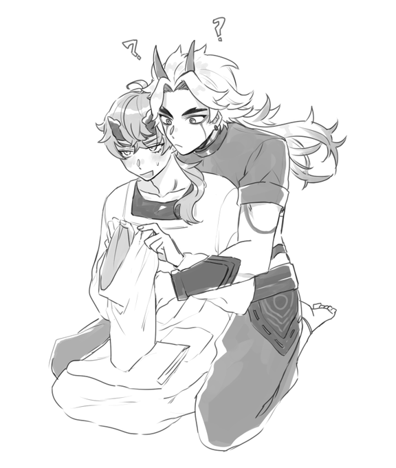 #WIP #wipart. I really wanted to draw them in a #fluf way and I managed to catch the ball. Anyway it's coming well. More or less. ----- #itthoma #genshinimpactfanart #genshinfanart #genshinimpactcharacters #gebshinimpactart #thomagenshinimpact #ittogenshinimpact #ittoarataki