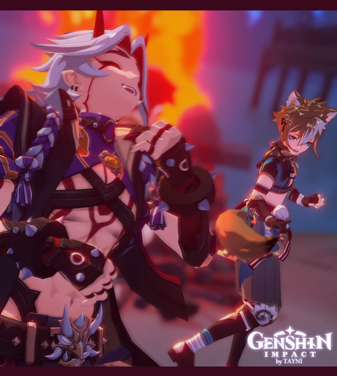 Тизер с фотосета ИттоГоро✨ . Teaser from the photoshoot of Ittogorou Itto by @rokshata_desert Gorou by @Ripka_koyo Craft by @ZaVarkaWorkshop Costumes by @rokshata_desert Wigs and ears by @Ripka_koyo #Genshinlmpact #cosplay #itto #gorou #yaoi #ittogorou