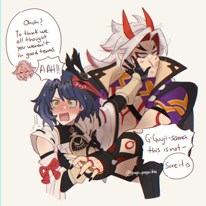 #IttoSaraWeek2022 Day 5: Proposal In which itto is proposing… TO DUEL!! HAHA!!! FOOLISH KUJOU TENGU OR SHOULD I CALL YOU KUJOU CHIC-//trips into beans @ittosaraweek22 #ittosara