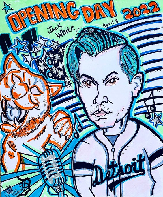 #OpeningDay #jackwhite 🎙🇺🇲 #DetroitRoots #FanArt #DetroitTigersBaseball #Art #Detroit @tigers Go Tigers! @thirdmanrecords