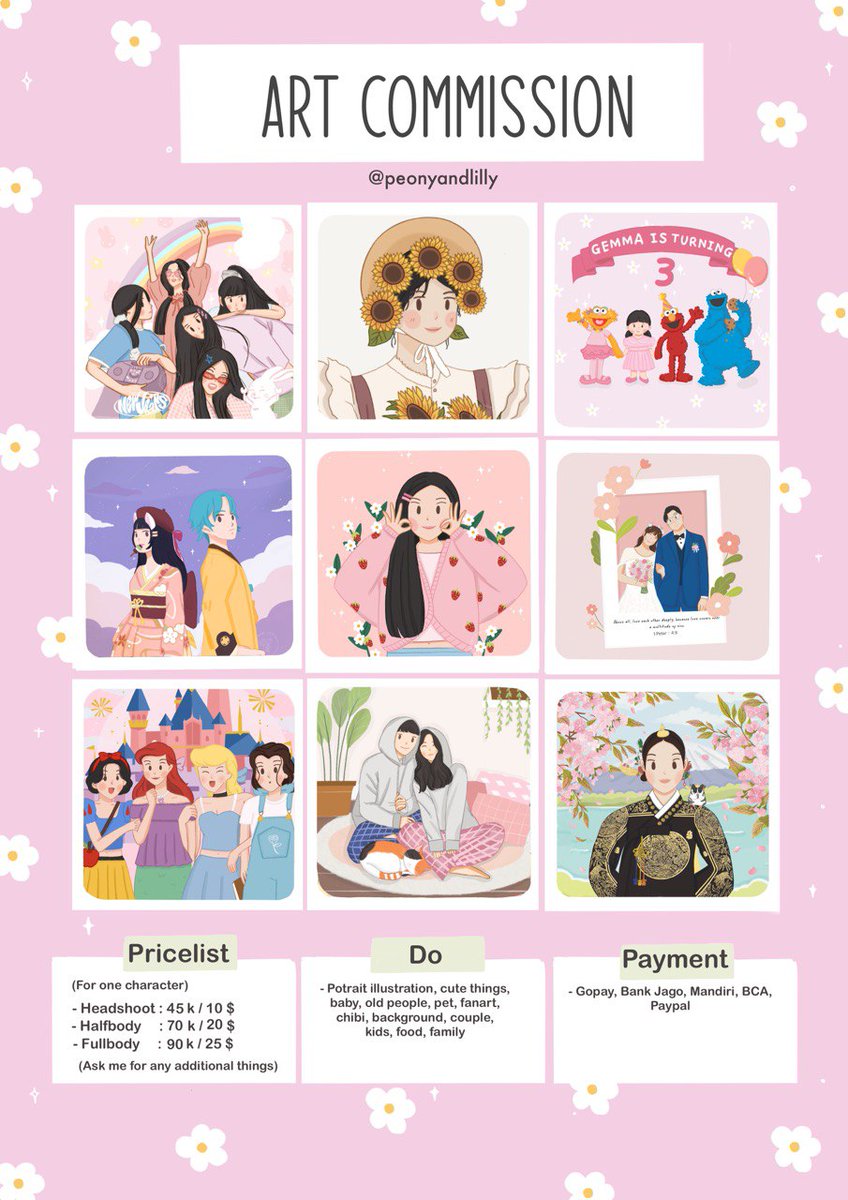 🌼✨Open Commission✨🌼 Share, RT and likes are super appreciated. Hello, I'm opening commission for local and international. Feel free to DM if you’ve got questions.Thank you everyone 💕☺️ @CmsnArtist_Id @cmsn_ART #opencommissions #zonakaryaid #zonauang #artidn #jasagambar