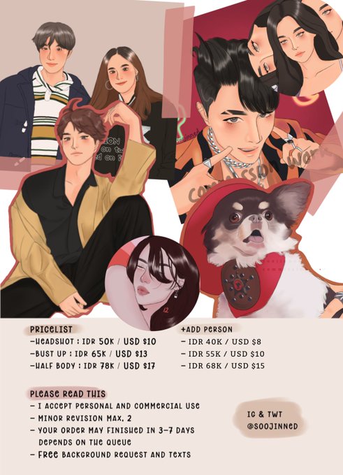 hai aku buka urgent commission utk lokal dan international^^ tolong bantu like & rt nya yaa orang baik! yg tertarik boleh lgsg dm aku yah, thank you ♡ instagram.com/soojinned for portfolio #opencommission #commissionopen @CmsnArtist_Id @cmsn_ART #zonakarya #jasagambar