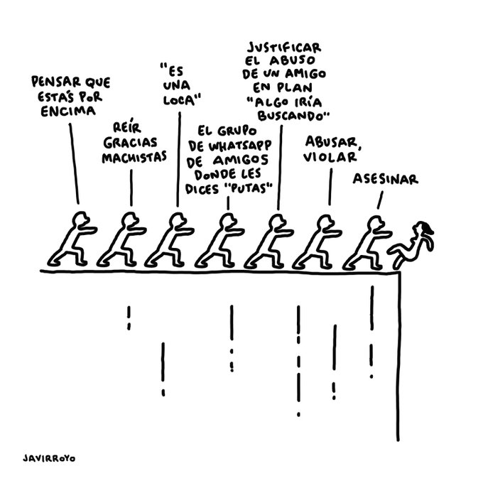 Pensar que estás por encima de una mujer también es violencia, y está conectado con el resto de las violencias del sistema patriarcal. Empezar a revisarnos a diario es la gran tarea pendiente de los hombres hacia un mundo más igualitario. . #niunamenos #javirroyo