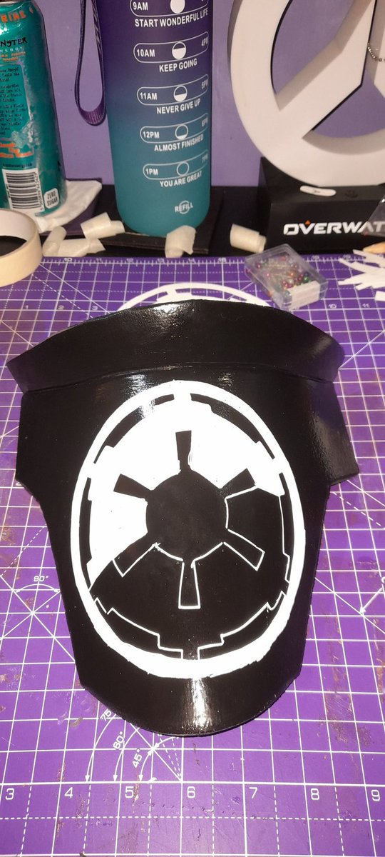 Been working on drawing the empire's logo on one armour part for the shoulder since 9pm, it is now 11:40pm and I'm off to bed night all <3 #cosplay #JediFallenOrder #CalKestis #Inquisitor #StarWars #LondonMCM2023