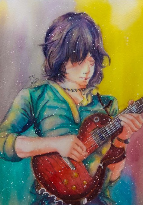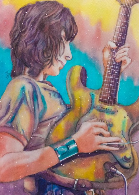 レスポールを弾く #ジェフ・ベック を見てみたかった🎸 #JEFFBECK #JeffBeck #jeffbeck #水彩 #水彩画 #透明水彩 #watercolor #絵描きさんと繋がりたい #みんなで楽しむTwitter展覧会
