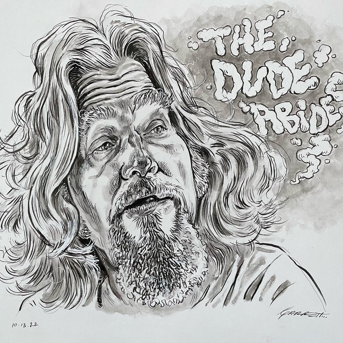 Day 13 - the dude abides. Jeffrey Lebowski @TheJeffBridges #thebiglebowski #jeffreylebowski #thedude #jeffbridges #coenbrothers #elduderino #inktober #inktober2022