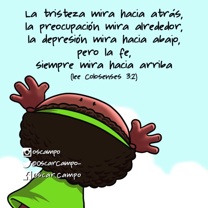 La tristeza mira hacia atrás, la preocupación mira alrededor, la depresión mira hacia abajo, pero la fe siempre mira hacia arriba (lee Colosenses 3:2) #God #Jesus #illustration #wisdomtips #compartiresbendecir #todaysdoodle