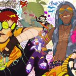 Gum Rhyth and pots for JSRI. Gum now has amber eyes instead of brown, Rhyth was a blast to reimagine for the webcomic. #digitalart #medibang #jetsetradio #jetsetradiofuture #CLIPSTUDIOPAINT #DigitalArtist #illustrationart