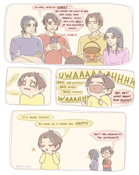 How dare jiujiu eat all of A-Ling's hard-earned candy!?!! . I'm excited for #jiujiuween #MDZS #MoDaoZuShi #jinling #JiangCheng