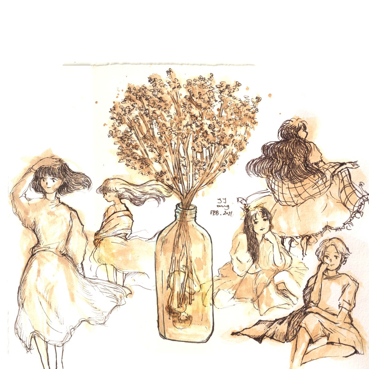 รีงานเก่าเพราะยังไม่ได้วาดอะไรใหม่เลยค่ะ--- เก่าเบอร์ไหน เก่าขนาดที่ว่าบางรูปเป็นรูปที่วาดสมัยยุคก่อนโควิดเลยล่ะคั้บ🥲🥲🥲🥲 #สายผลิตหิวข้าว #มาอวดโฮมุ้ #jjjangsketchbook