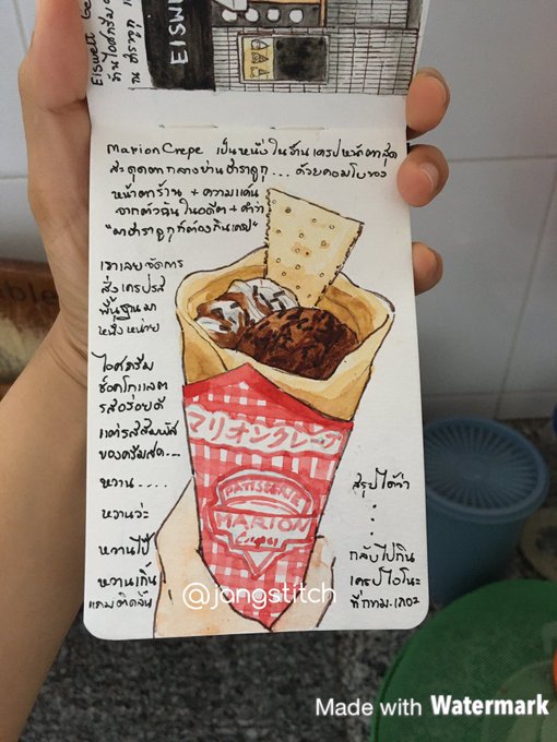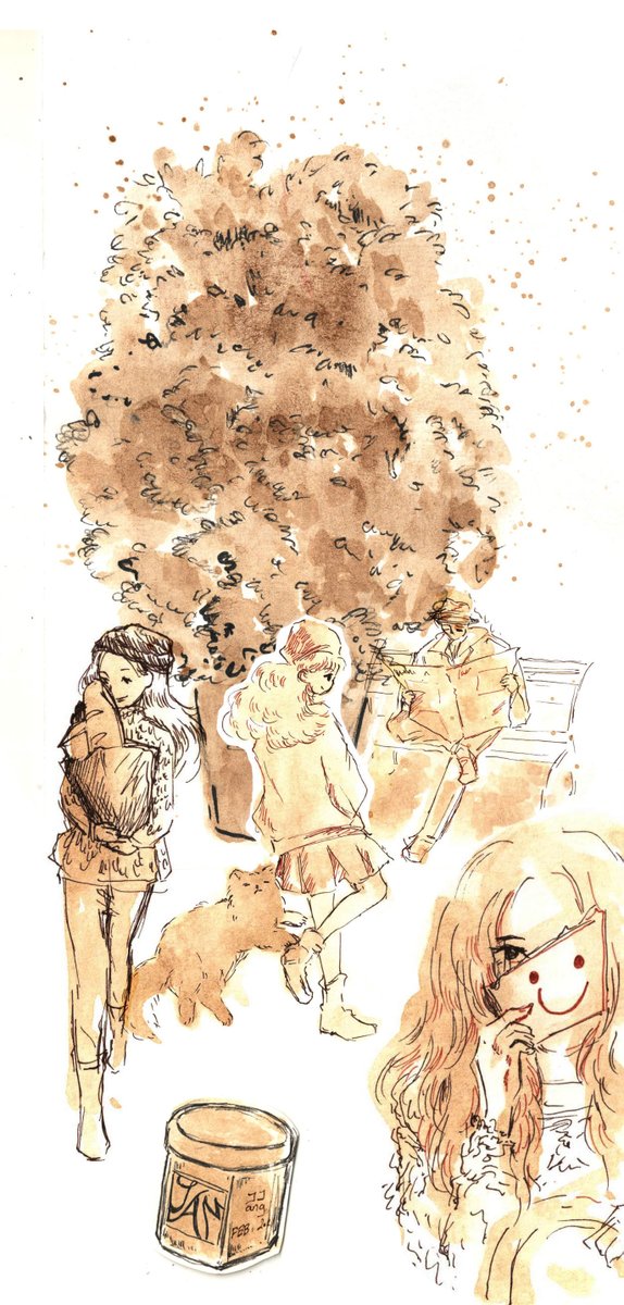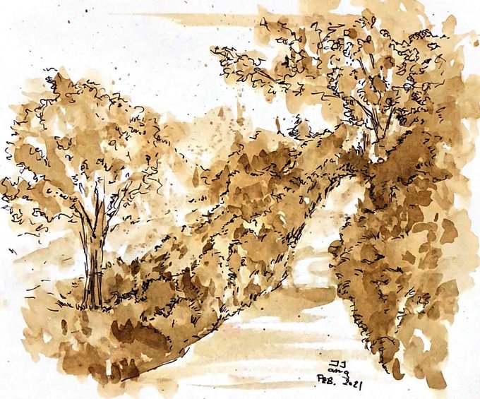 เมื่อช่วงต้นปีเคยลองหาทำเอากากกาแฟที่ไปตบมาจากร้านแถวบ้านมาลองใช้แทนสีน้ำด้วยล่ะ ชอบโทนสีทีออกมาเหมือนกันนะคะ นับเป็นหนึ่งในงานที่เราภูมิใจมากๆเลย แบบเหย เรานี่มันไอเดียเจ๋งดีจริงๆ (ที่จริงคือลองทำแบบแรนด้อมแล้วบังเอิญออกมาดี---) #ชุมชนนักสร้างสรรค์ #jjjangsketchbook