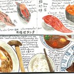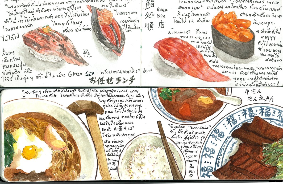 บันทึกการกินเดือนมกราคม 2565 ของข้าพเจ้า—— ยังไม่ค่อยชินกับการบริหารพื้นที่หน้ากระดาษเท่าไหร่ อยากทำให้เลย์เอาท์ในหน้าต่อๆไปสวยกว่านี้ล่ะ #jjjangsketchbook